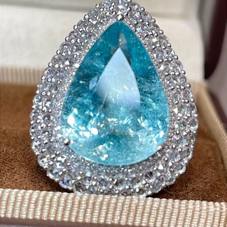 Palabra clave:Verdant calma Paraiba turmalina anillo de oro natural bosque profundo chispa