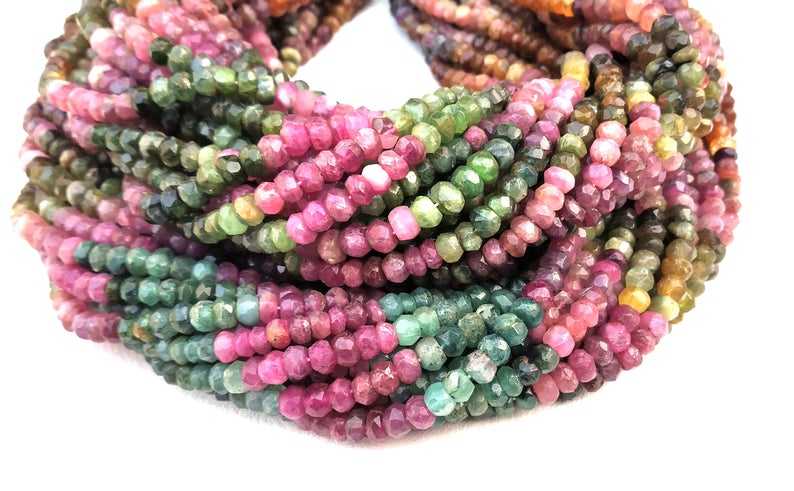 Cuentas de turmalina Natural para fabricación de joyas, gemas múltiples facetadas de 13 pulgadas, fabricación de joyas, fabricación de joyas
