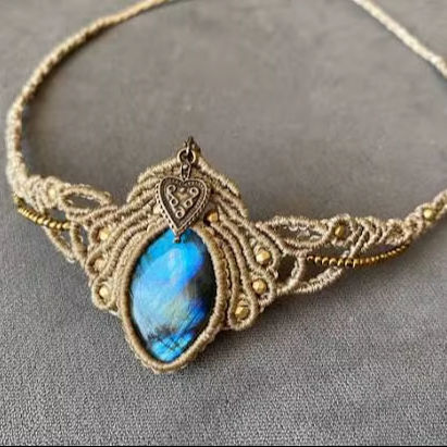 Nombre del producto:Collar de macramé con gemas turquesas