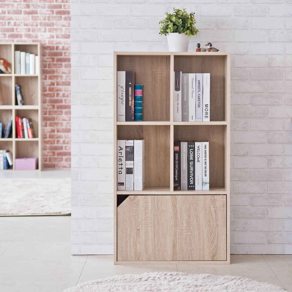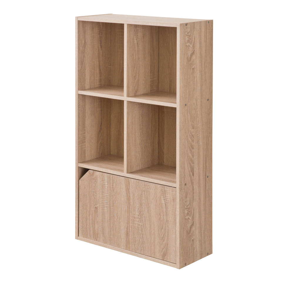 Estantería de almacenamiento de 3 niveles con puerta, Natural
