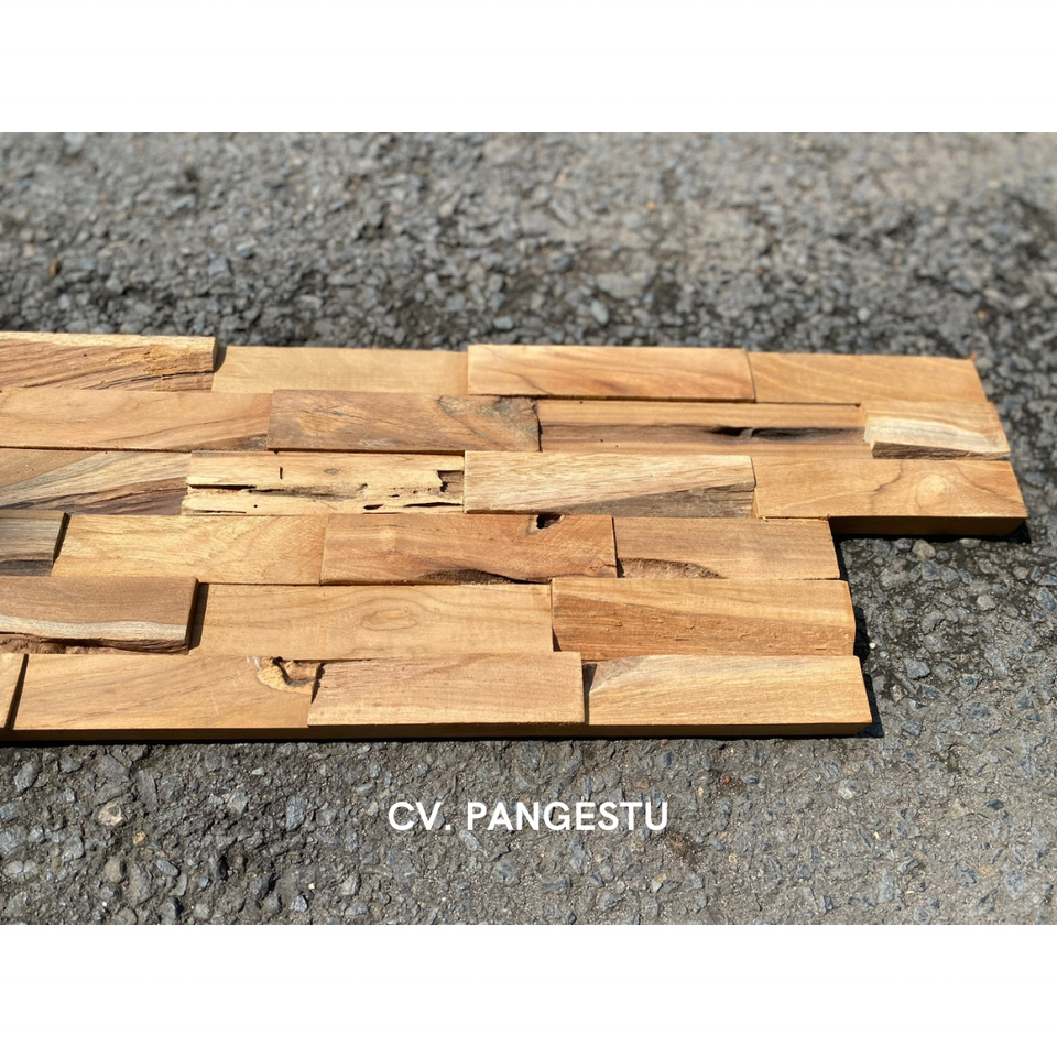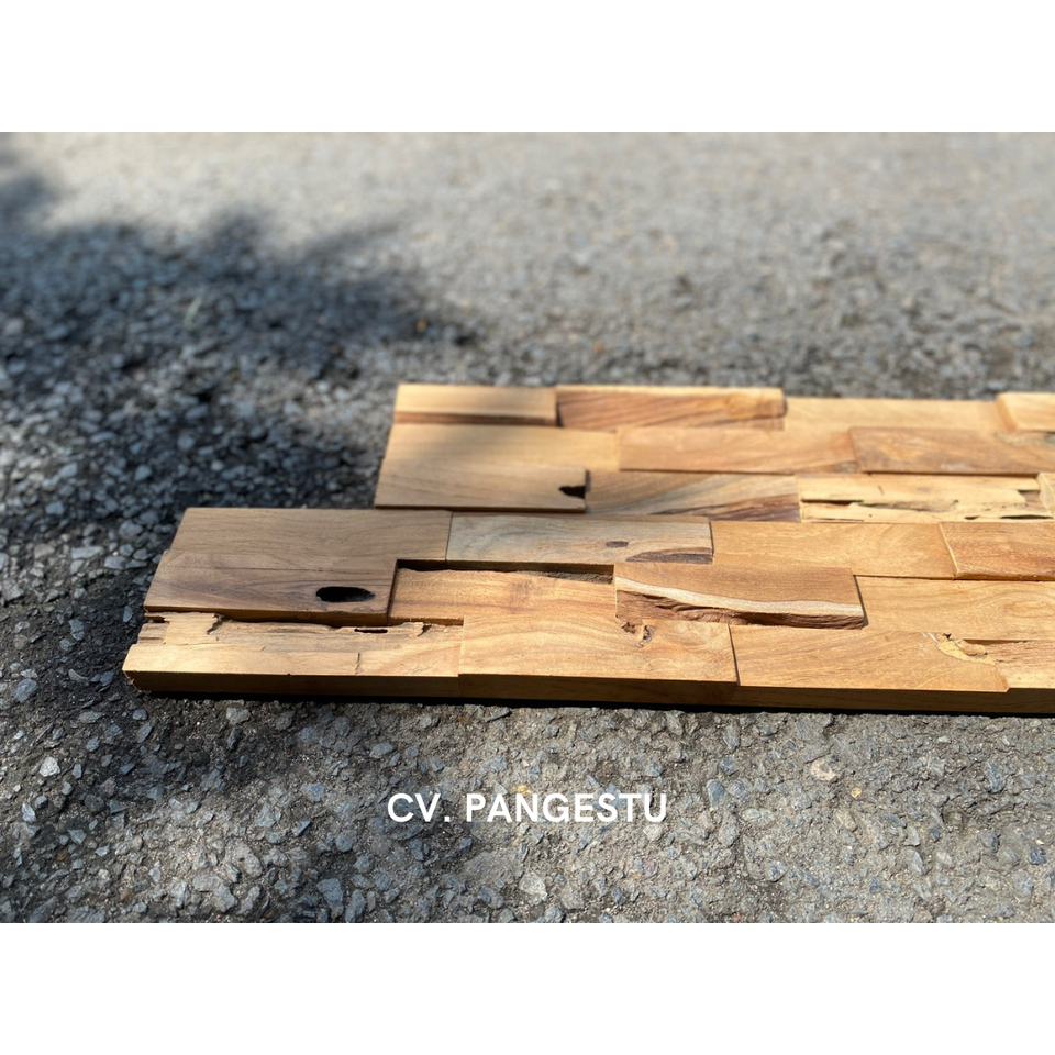 Característica:A prueba de arrubas, Antideslizante, Hecho de madera de teca recuperada 100% sólida., Bloques de formas orgánicas con una textura rústica 3D profunda, Hecho a mano por artesanos experimentados