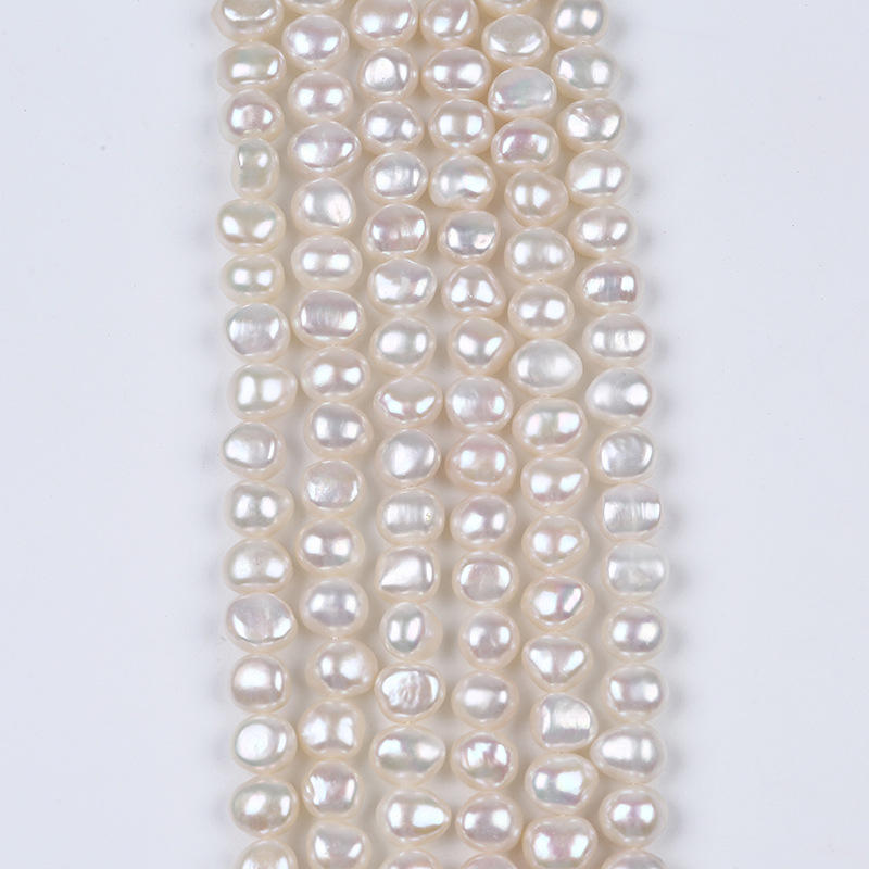 8mm perla de agua dulce blanco + oro y plata 5 # perlas sueltas naturales agujero personalizado para uso en joyería