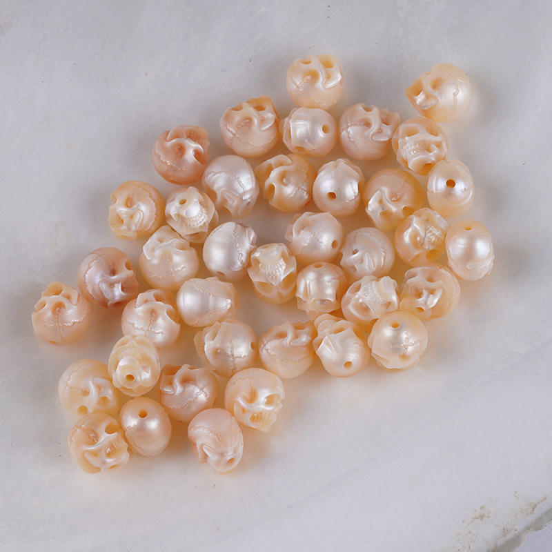 Pulsera de Perlas de Agua Dulce Naturales de 7-9 mm, Talladas Finamente, con Calavera Blanca, Accesorio Decorativo Cultural para la Cintura