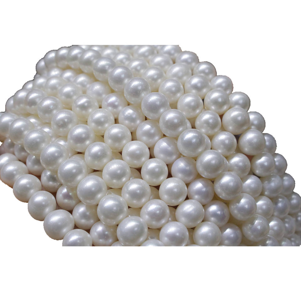 Collar de Perlas de Agua Dulce Naturales de 9-10 mm con Forma de Círculo Casi Perfecta, Color Blanco Brillante Impecable, Hebilla Retro de Lujo
