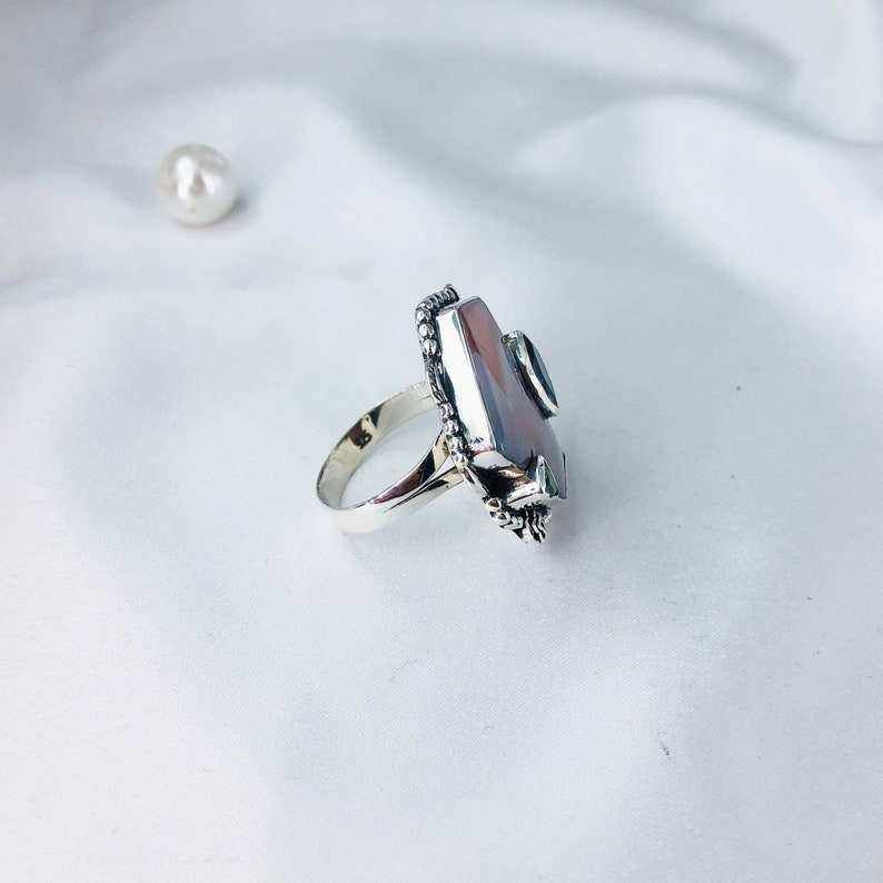 Anillo de Plata de Ley 925 Natural hecho a mano con piedras preciosas de Coral tratadas térmicamente perfecto regalo de boda de Navidad con ágata de Botswana