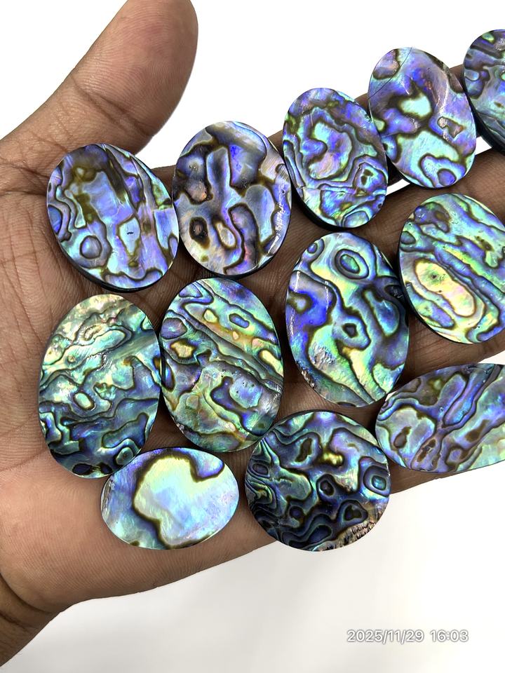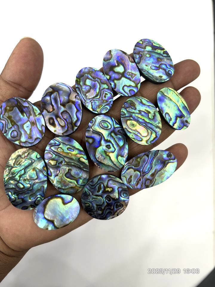 Concha de Abulón Natural, Brillo Azul Fuego, Gema Suelta, Cabujón, Forma Mixta, Tamaño Mixto, 20 a 30 mm Aprox.