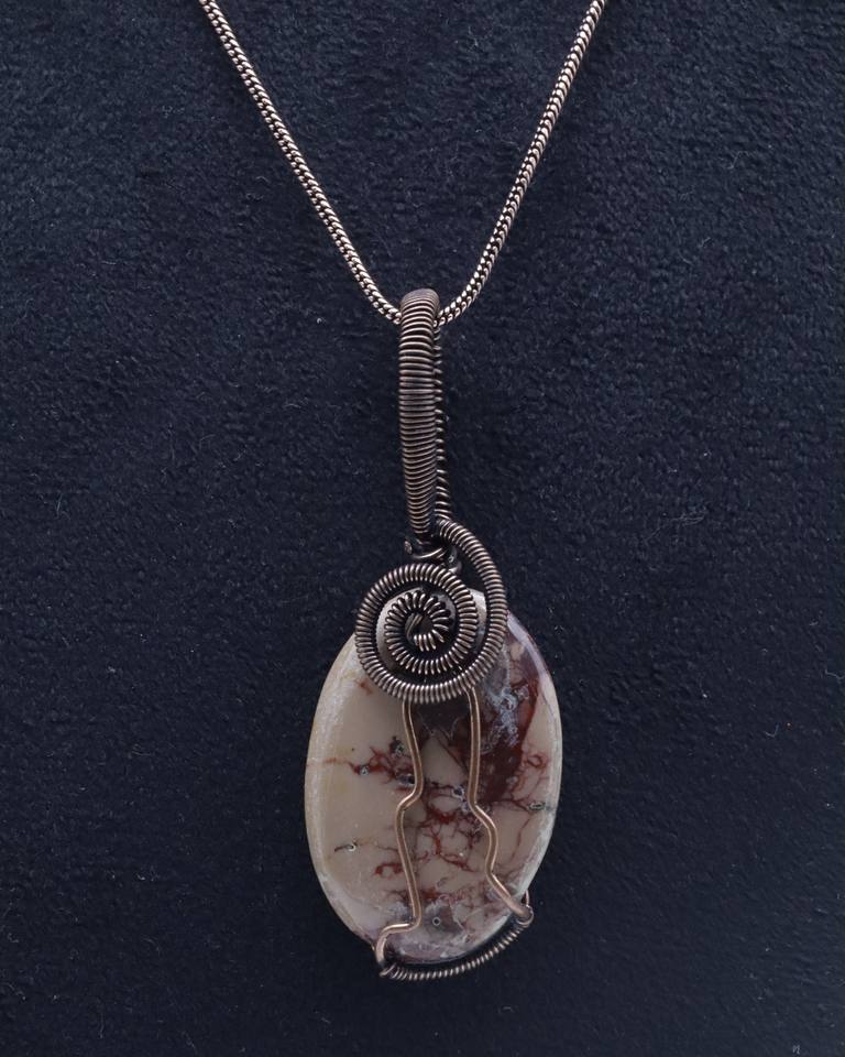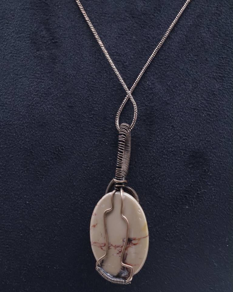 Collar con Colgante de Piedra de Ágata Natural Envuelto en Alambre de Cobre, Joyería Boho Hecha a Mano con Piedras Preciosas, Venta al Por Mayor