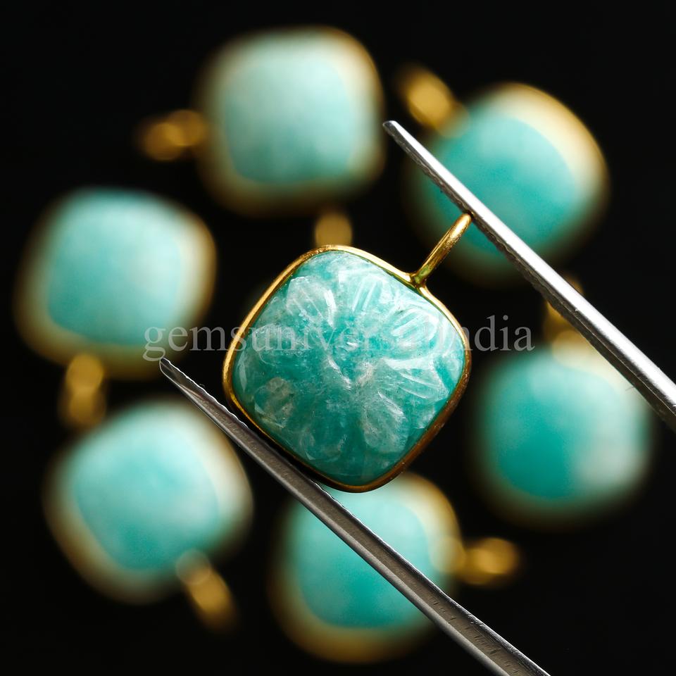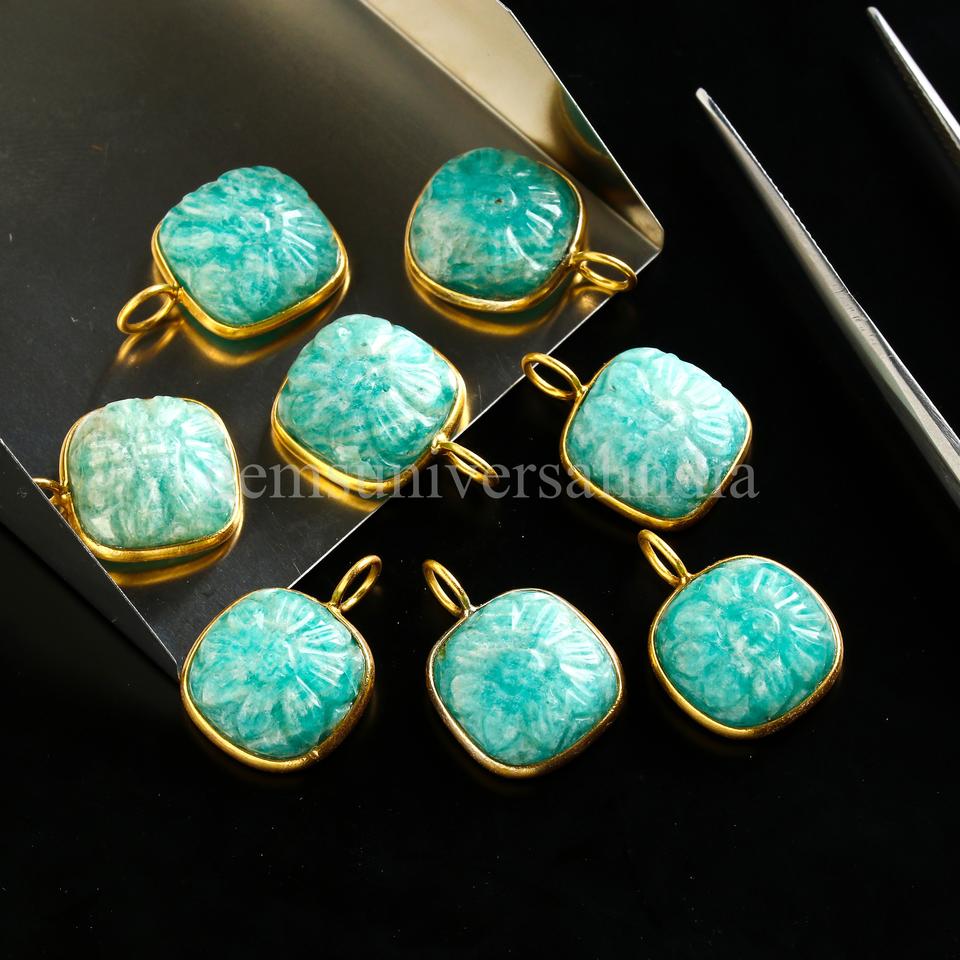 Nombre del producto:Colgante de piedras preciosas talladas en forma de flor con forma de cojín de amazonita natural