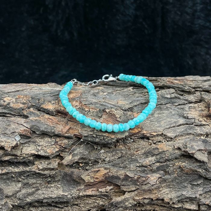 Pulsera de Amazonita Natural Facetada en Forma de Rondelle con Cierre de Langosta de Plata de Ley 925, Joyería de Piedras Preciosas Hecha a Mano para Compromiso