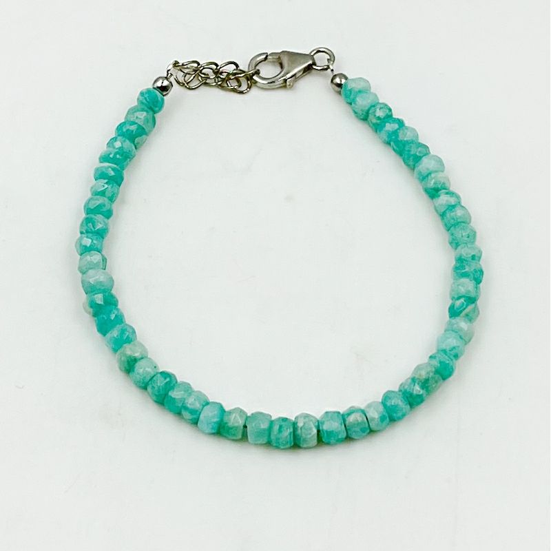 Pulseras de plata de ley con rondelas facetadas de amazonita