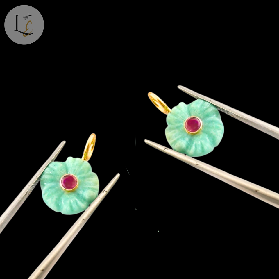 name or words:Natural Amazonite Flower Shape Inlay Gemstone Pendant