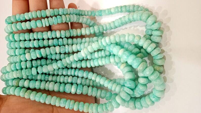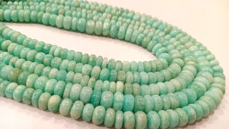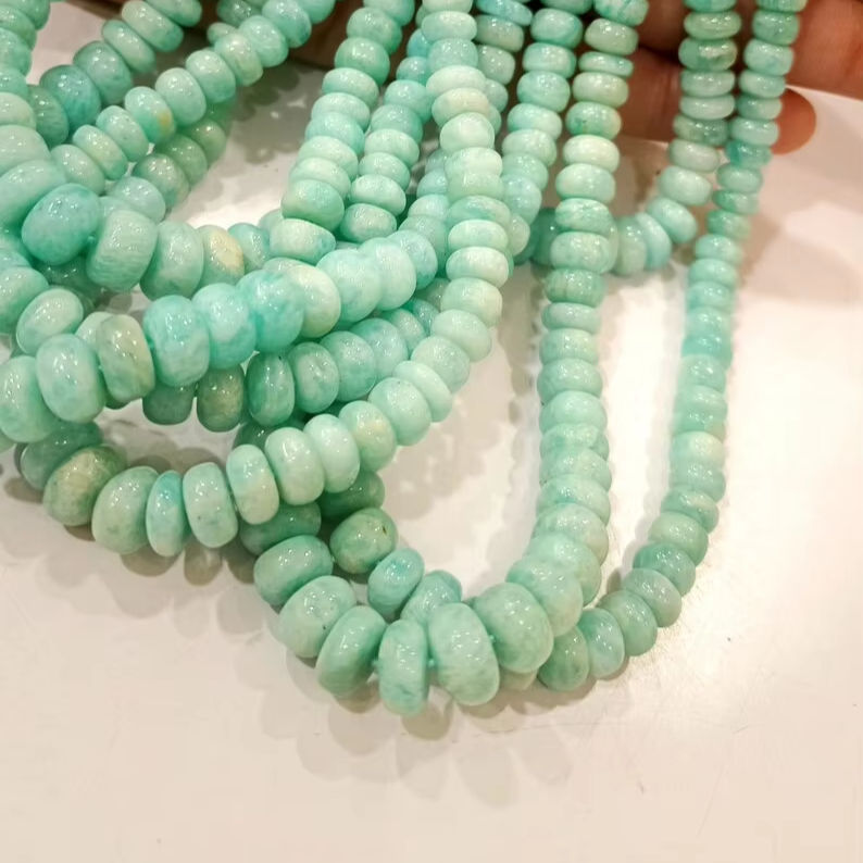 Amazonita natural Rondelle Plain Smooth Cuentas de 5 a 8mm Vendidas por hebra 8 pulgadas de largo