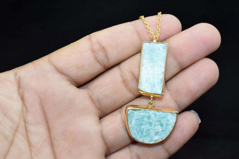 Amazonita natural sin tratar áspera encanto collar de piedras preciosas 92,5 plata esterlina 18 "largo joyería de calidad superior para mujer