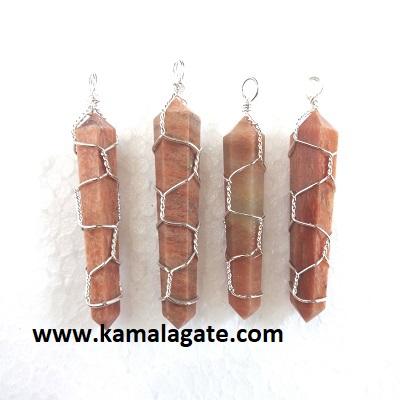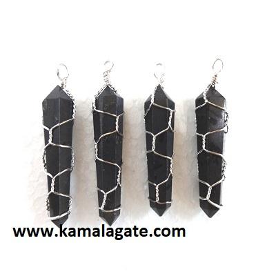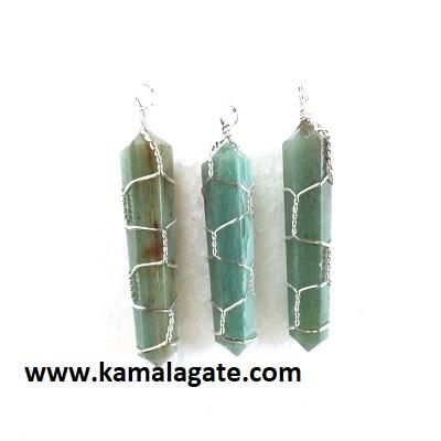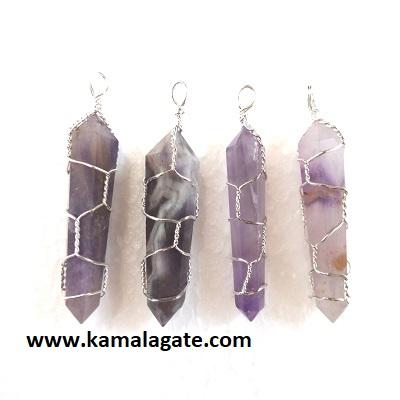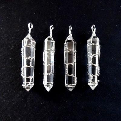 Collar con Colgante de Cristal de Cuarzo Natural de Doble Terminación, Envuelto en Alambre, Estilo Bohemio, Chapado en Plata Antigua