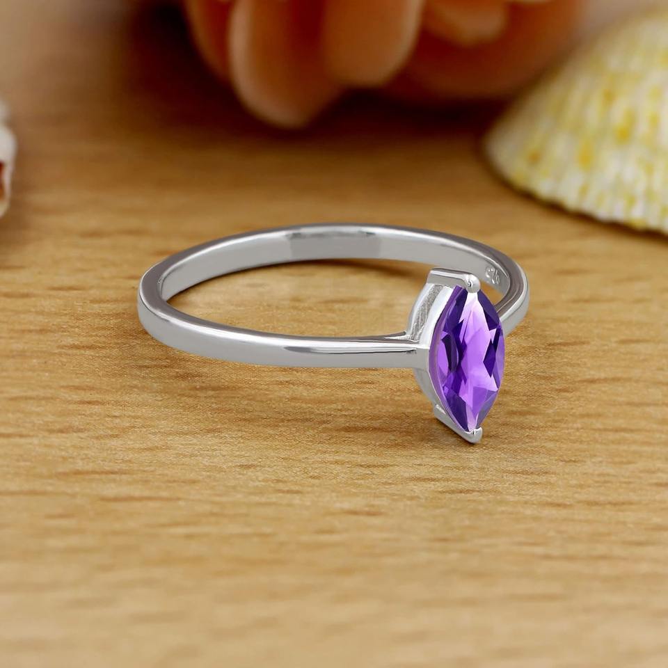 Anillo de amatista natural, chapado en rodio, Plata de Ley 925, forma de amantes, ajuste de punta, joyería de compromiso de boda hecha a mano a la moda