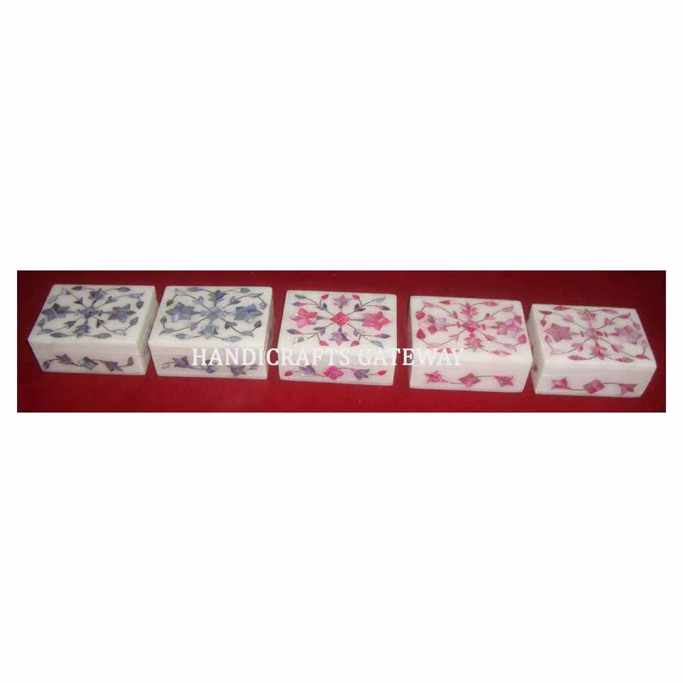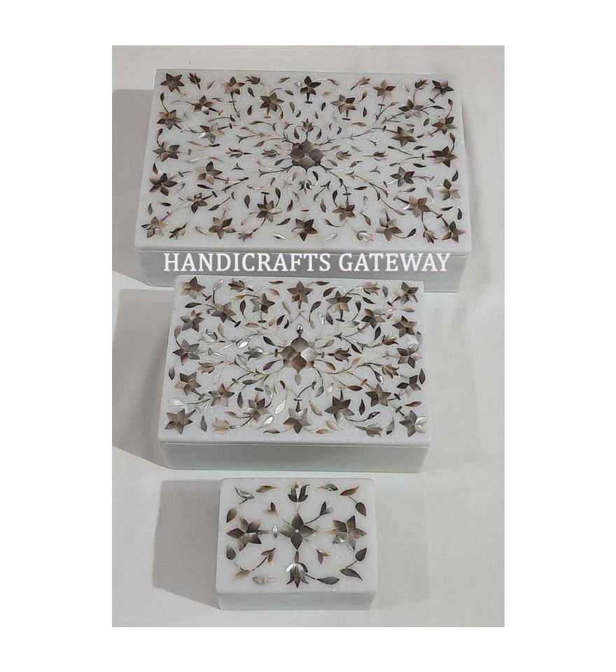 Diseño antiguo natural y trabajo de incrustaciones preciosas con caja de regalo de joyería de madreperla de mármol de forma rectangular hecha a mano personalizada