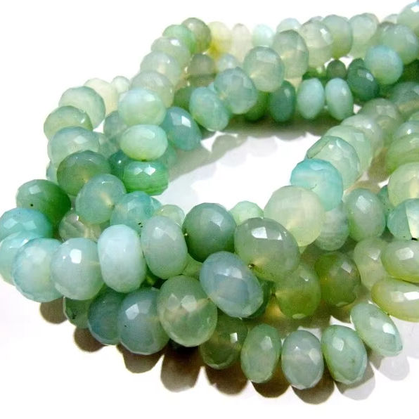 Cuentas de Calcedonia de agua natural Rondelle, cuentas de Calcedonia de agua de tamaño lejano facetadas, hebra de 9 pulgadas de largo, cuentas de piedras preciosas de 8 a 10mm
