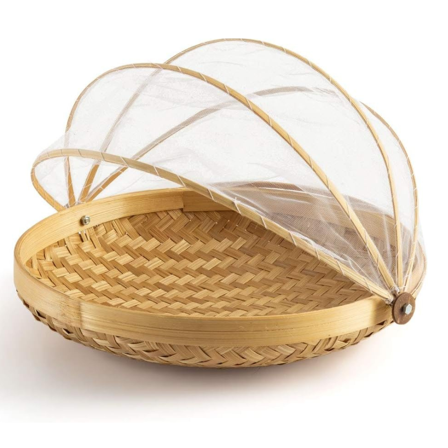 Cesta de bambú natural para envolver alimentos con malla fina hecha a mano en Vietnam para uso en exteriores