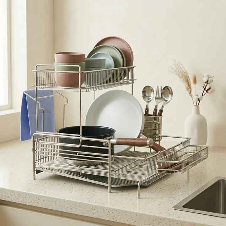 Escurridor de Platos de Bambú Natural, Organizador de Cocina, Soporte para Platos, Tazones, Tazas, Tapas de Ollas, Estante para Libros