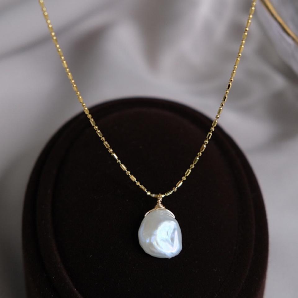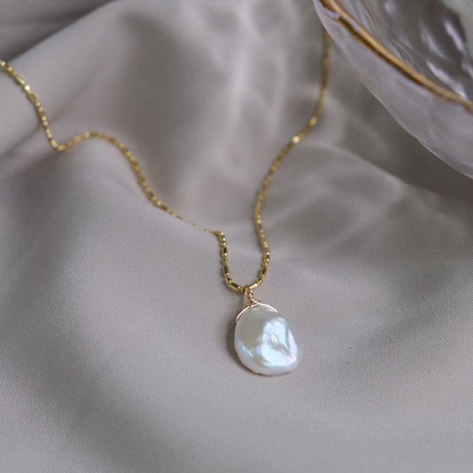 Collar con Colgante de Perla Keshi de Agua Dulce con Forma de Pétalo Barroco Natural, Cadena Simple para Clavícula para Mujer