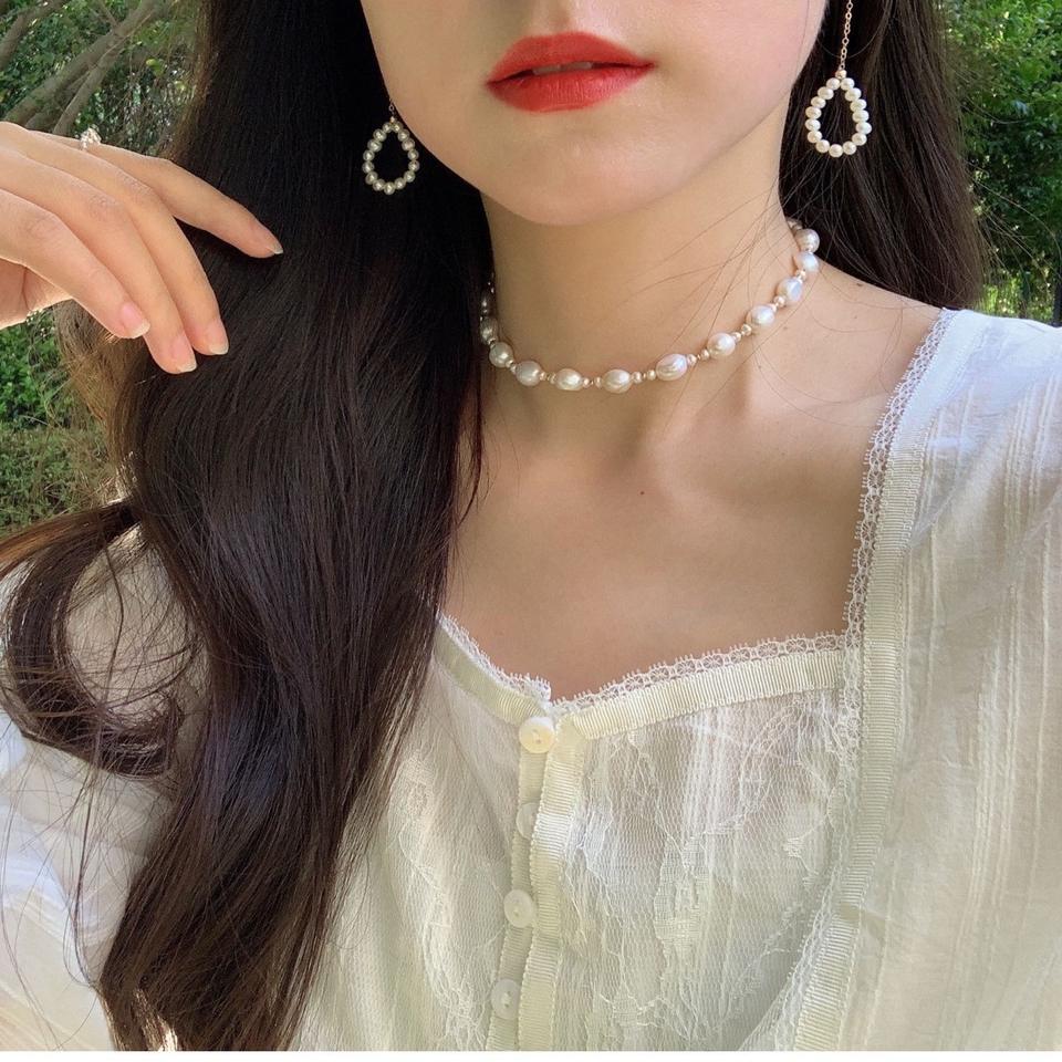 Collar de Perlas de Agua Dulce de Forma Barroca Natural con Gargantilla Chapada en Oro de 14K, Estilo Francés, Temperamento Nich