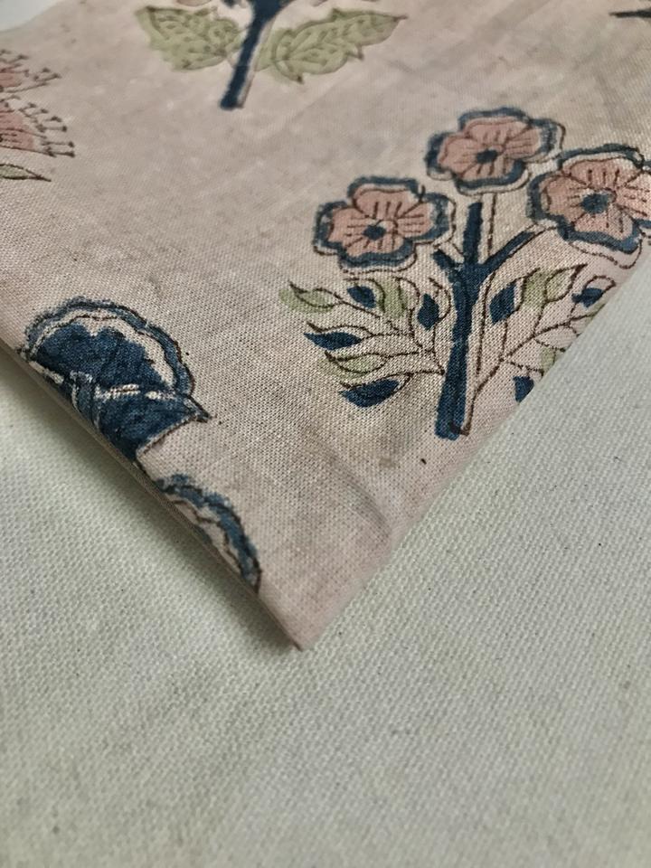 Tela de Algodón Estampada a Mano con Base Natural, con Diseño Floral Pastel Buti, Textil Tradicional Indio