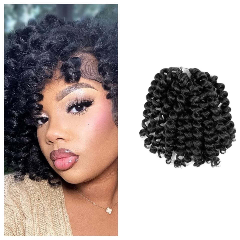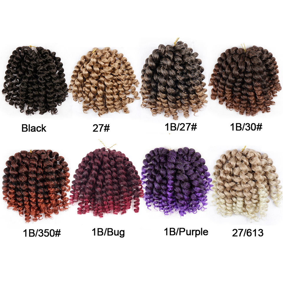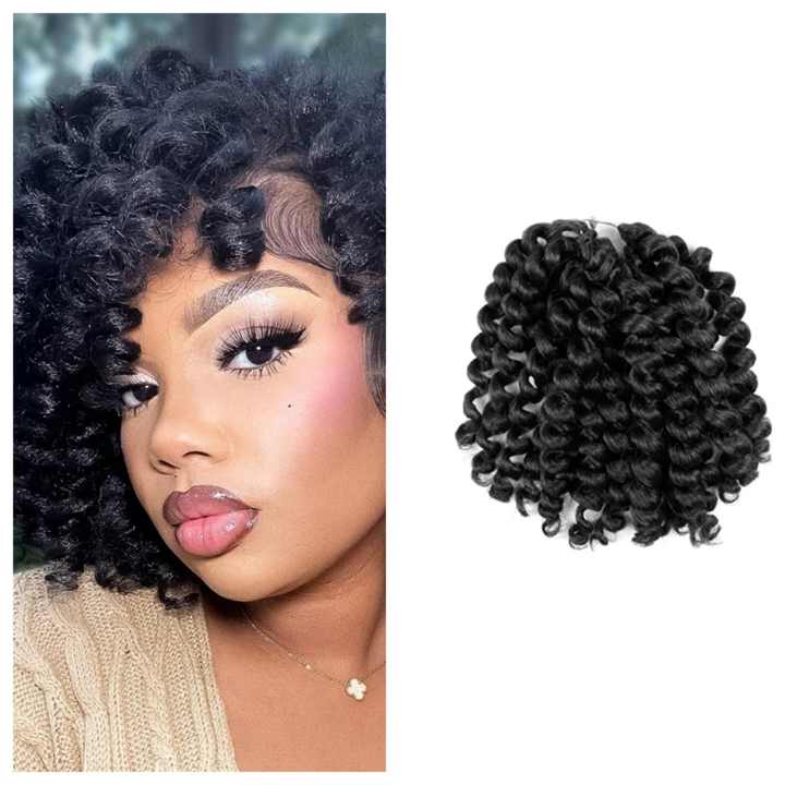 Trenzas de ganchillo rizadas de Bob corto de 8 pulgadas negras naturales, rizos hinchables, varita sintética, pelo de ganchillo para mujer negra