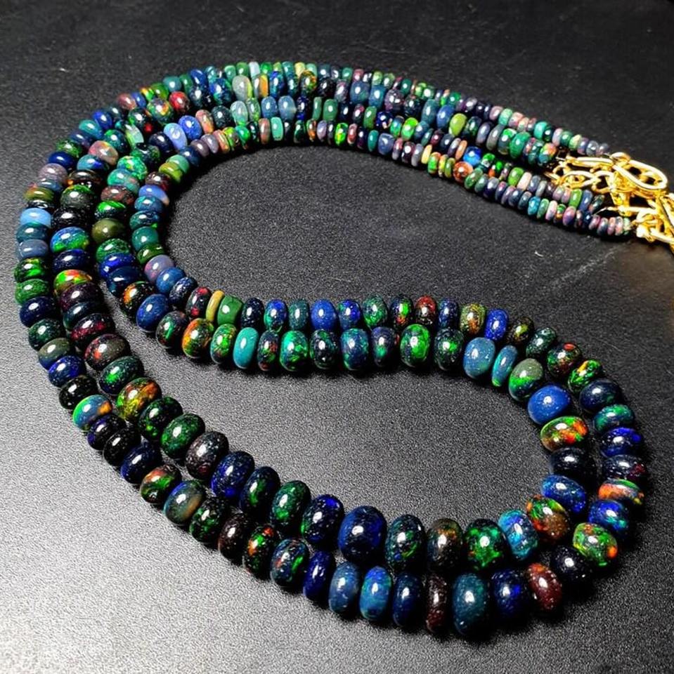 Nombre o palabras:Collar Rondelle liso del ópalo etíope natural