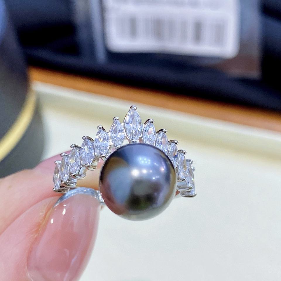 Anillo de Plata de Ley S925 con Perla Negra Natural de 10-11 mm, Redonda, Limpia y Moderna, Versátil para Uso Personal