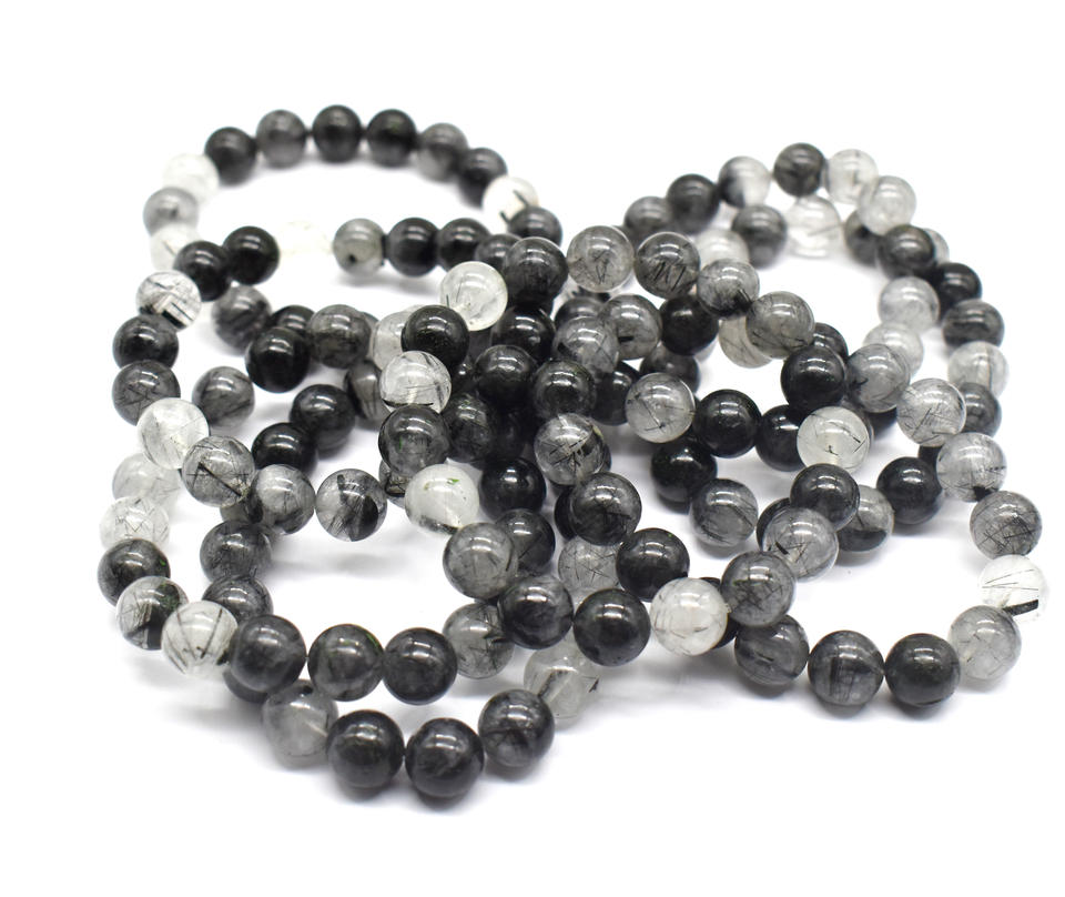 Pulsera de cuentas de rutilo negro natural Pulsera elástica de gemas de cristal redondas de 8mm y 10mm con cuentas de piedra Piedras preciosas sueltas
