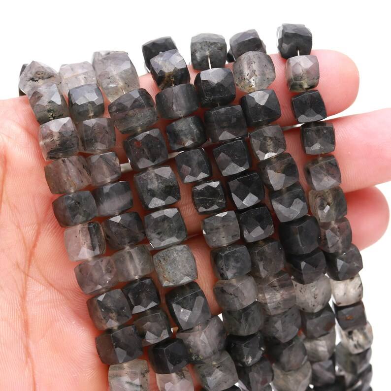 Cuentas de Piedras Preciosas Naturales de Rutilo Negro en Forma de Caja, Hebras de 6-9 mm, Lote de Cuentas Sueltas para Hacer Pulseras de Joyería a Precio de Mayoreo