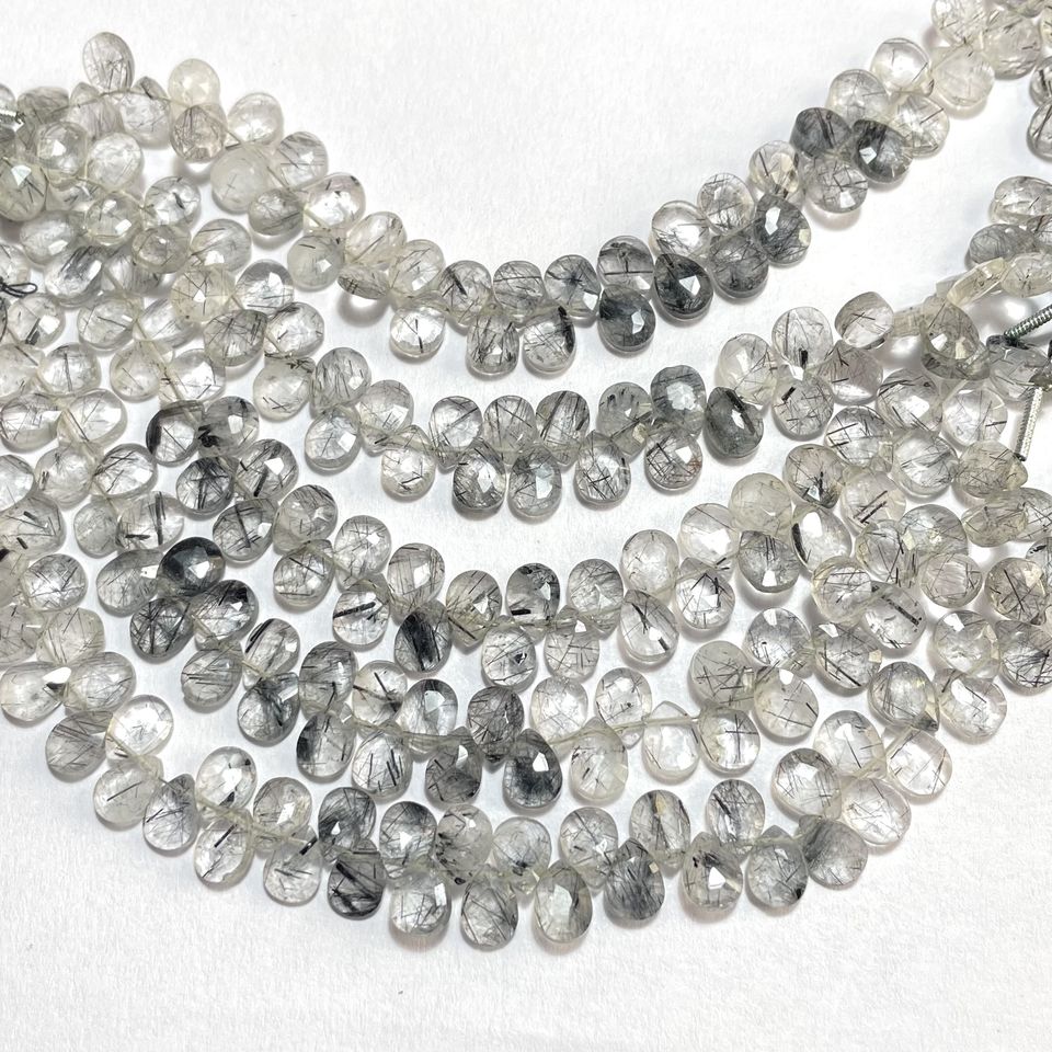 Cuentas facetadas de rutilo negro natural con forma de pera y almendra, piedras preciosas calibradas para hacer joyas, cuentas de piedra
