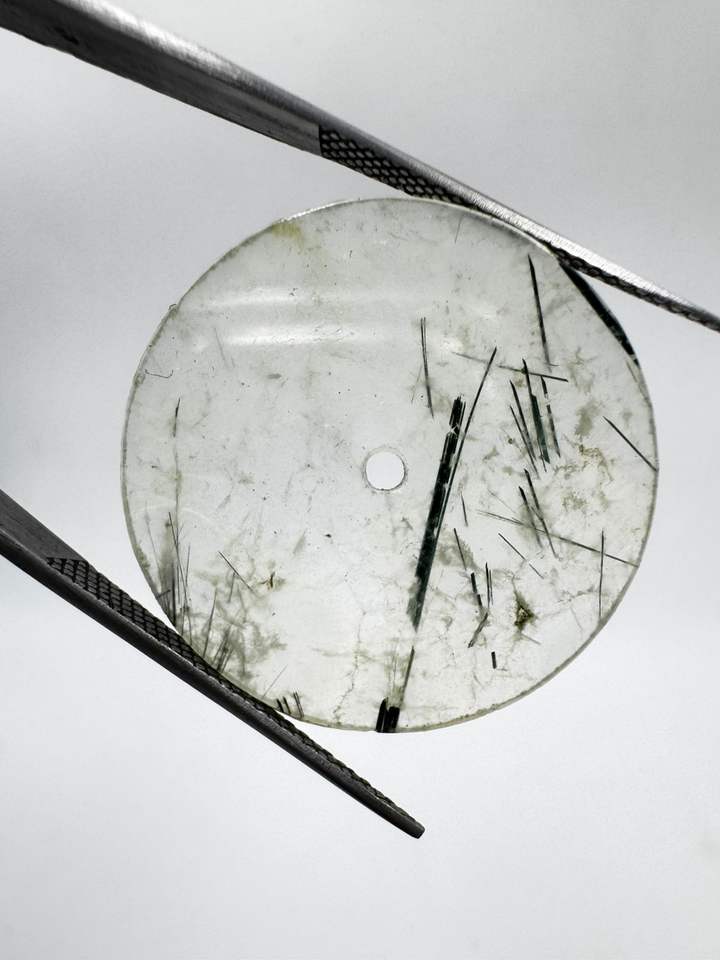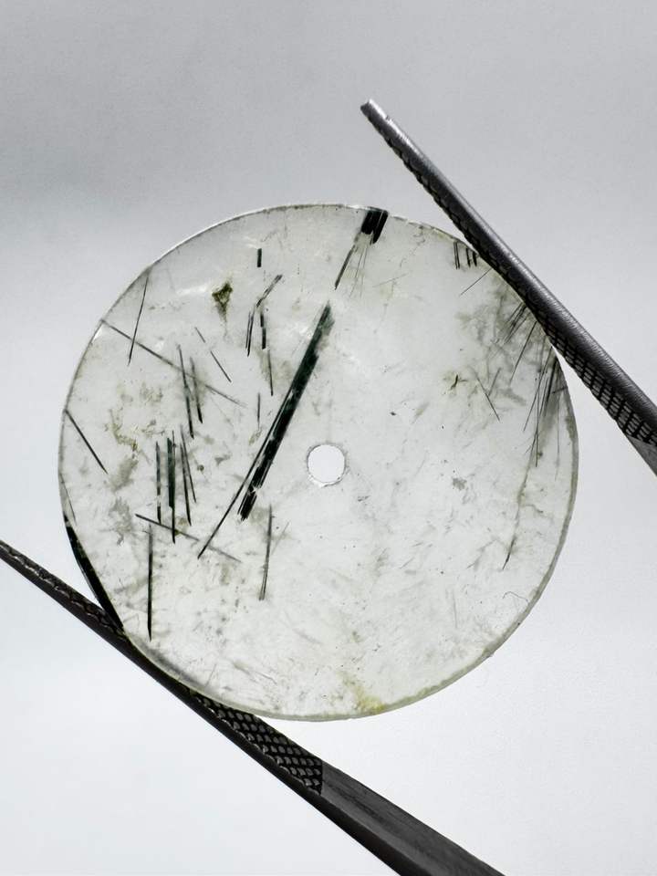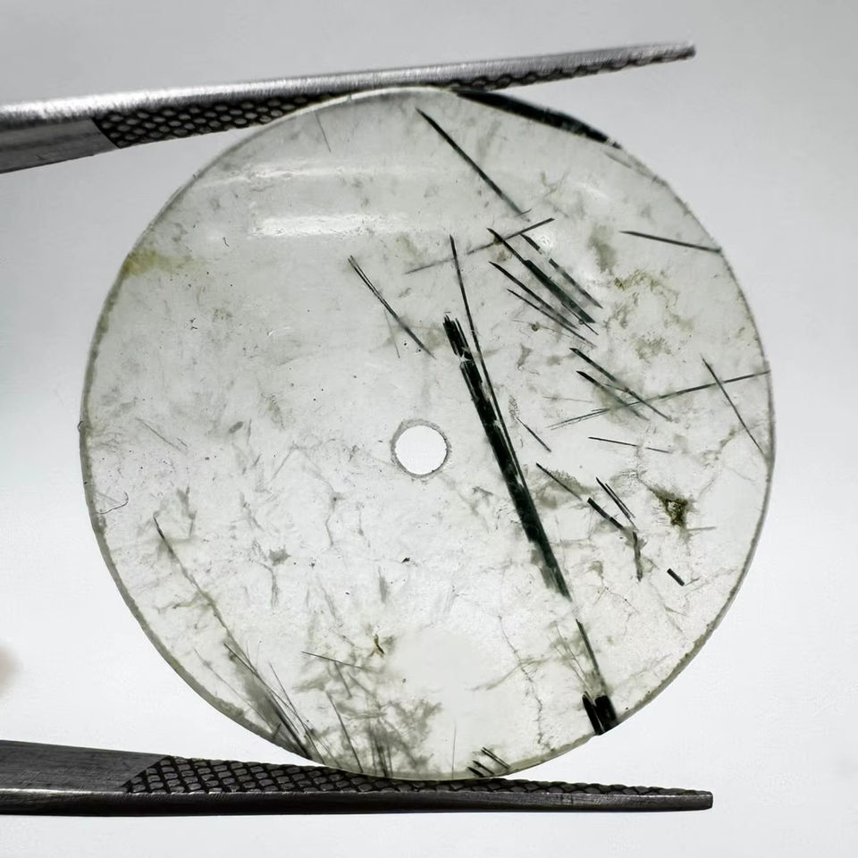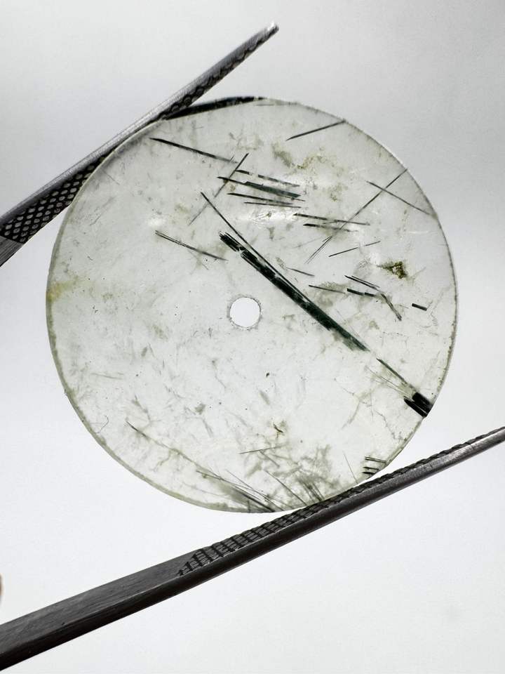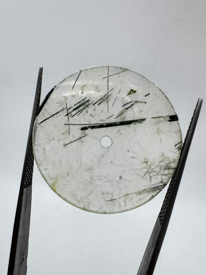 Esfera de reloj plana de rutilo negro natural de 31.50 mm, 1 mm de grosor, con orificio central de 2 mm.