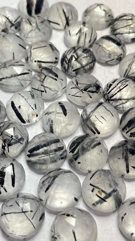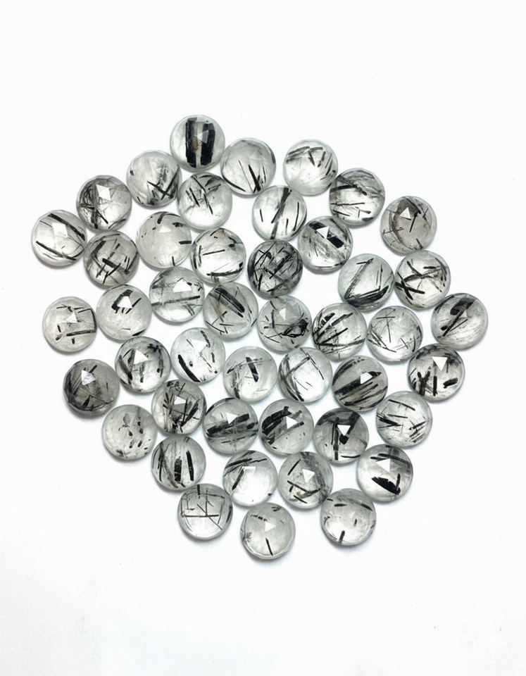 Piedra de rutilo negro natural con corte rosa de 9 mm, cristal redondo para protección y conexión con la Tierra, gema suelta con corte de roseta para joyería curativa.