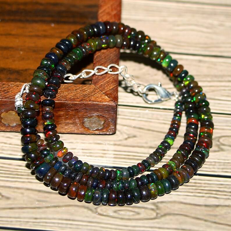Nombre del Producto:Collar de cuentas de ópalo de fuego etíope negro