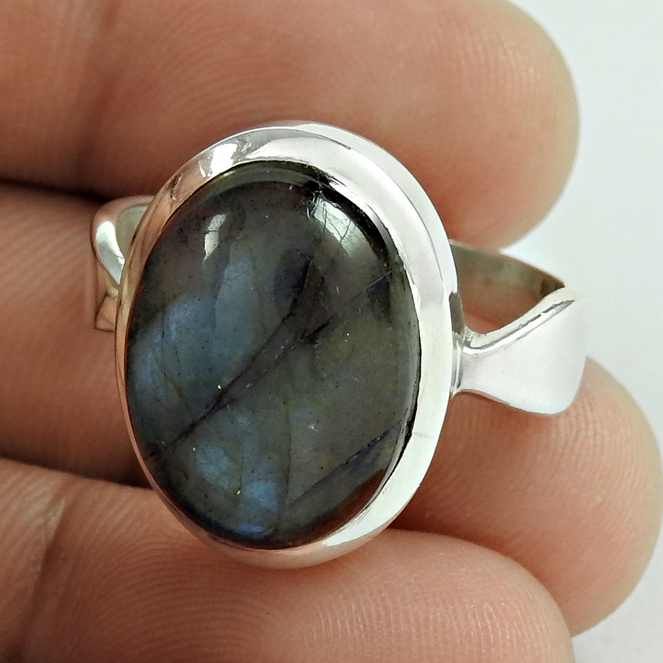 Piedra preciosa de labradorita de fuego azul natural Anillo de forma ovalada de Plata de Ley 925 Fabricante de joyería de diseño personalizado Exportador indio
