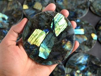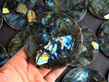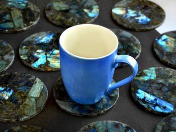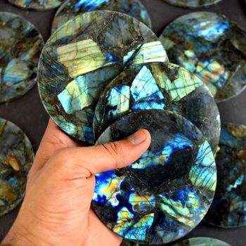 Posavasos Redondos de Labradorita Azul Natural, Posavasos de Piedra Pulida Únicos, Perfectos para Mesas de Café, Elegantes y Duraderos