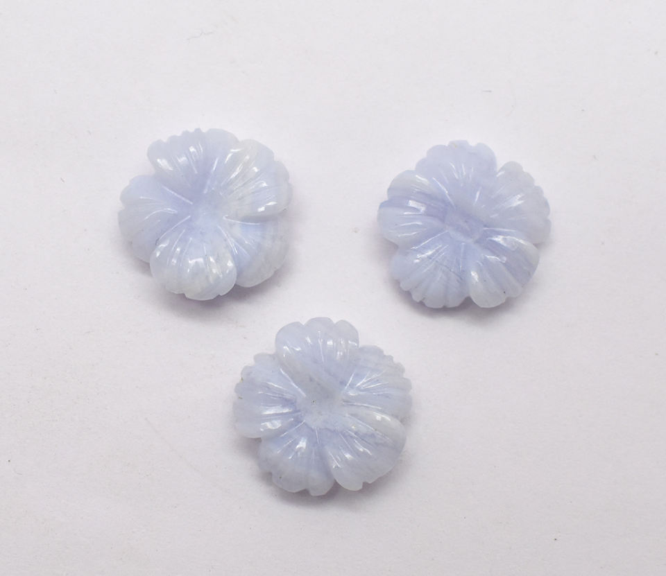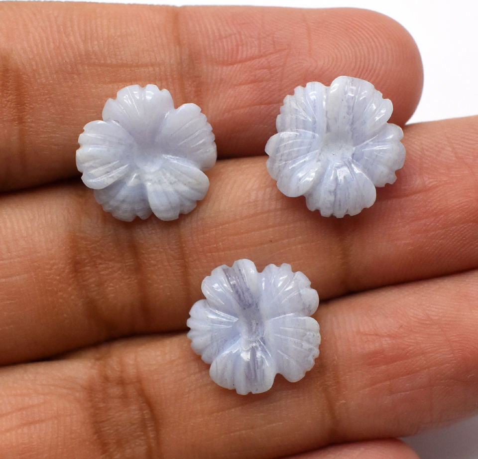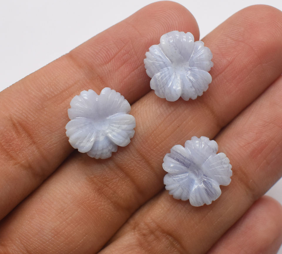 Lote de tallas de flores de ágata de encaje azul natural, flor tallada de ágata de encaje azul genuino, flores de ágata de encaje vintage, 15 mm