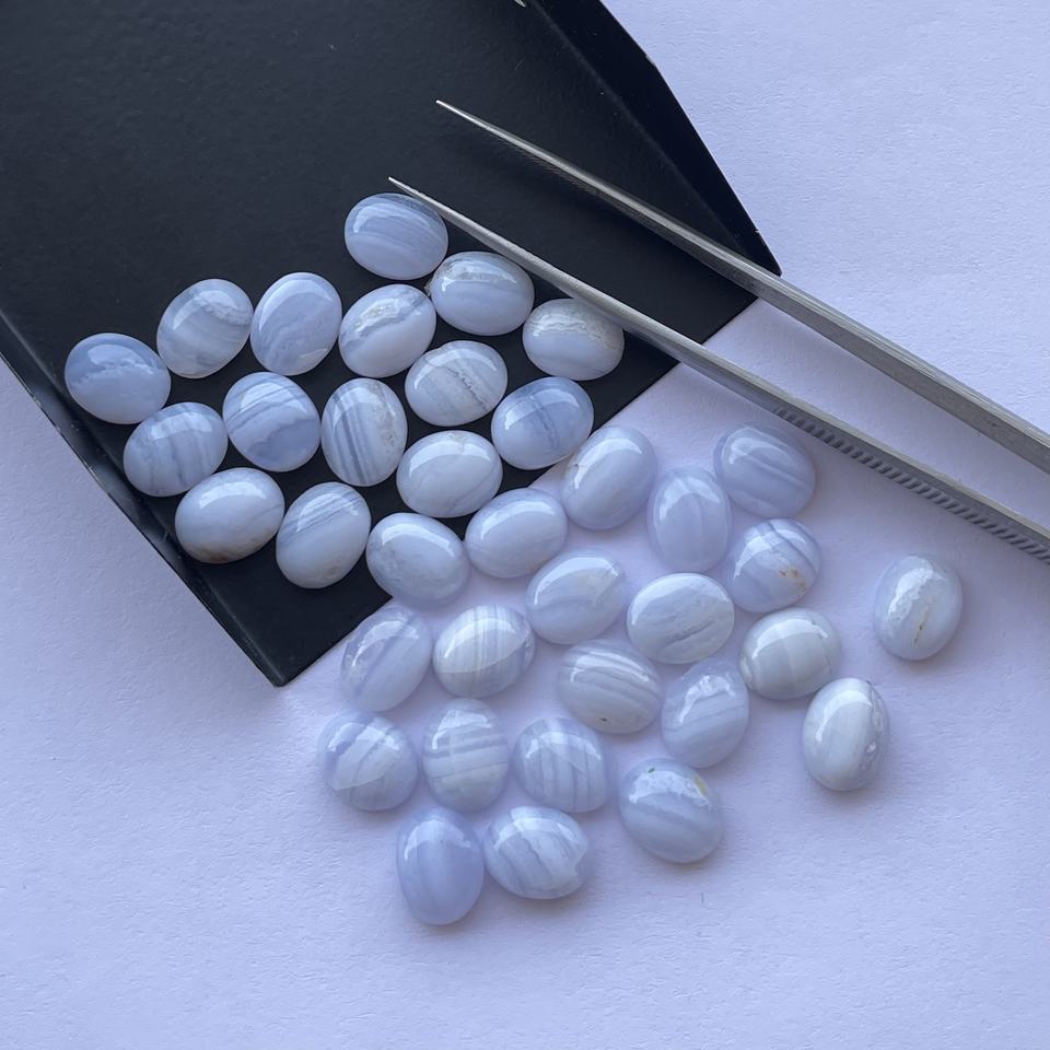 Product Name:Natural Blue Lace Agate Smooth Oval Flat Back Cabochon Loose Gemstone