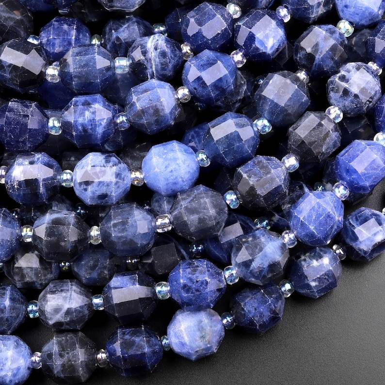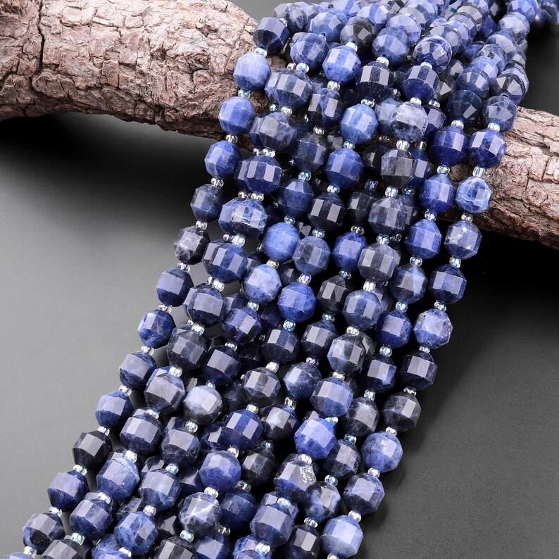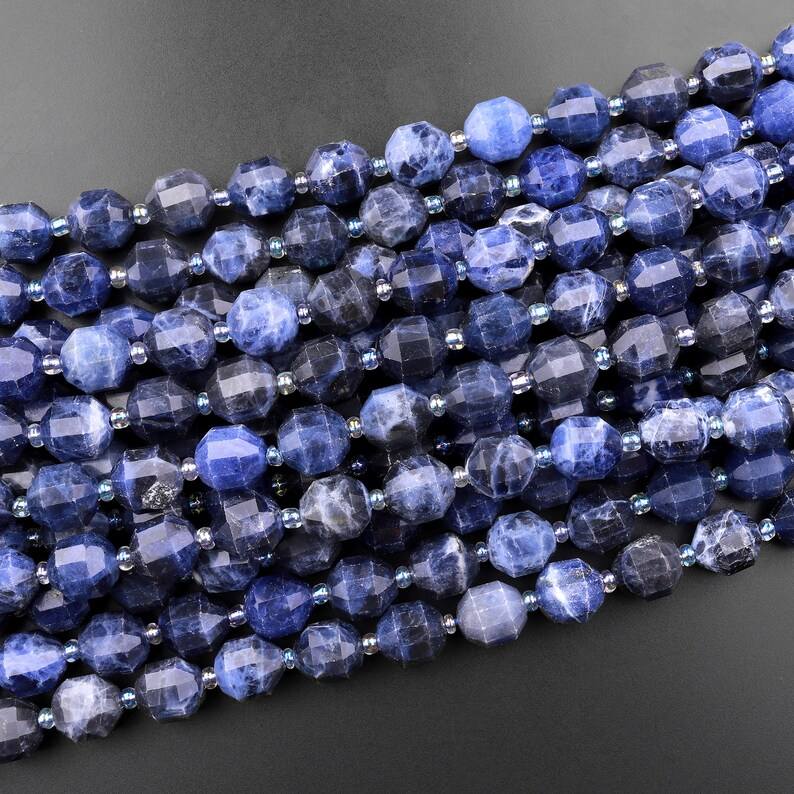 Cuentas de Sodalita Azul Natural, Redondeadas y Facetadas, Prisma Energético de Doble Punta, para Joyería, Manualidades y Bricolaje