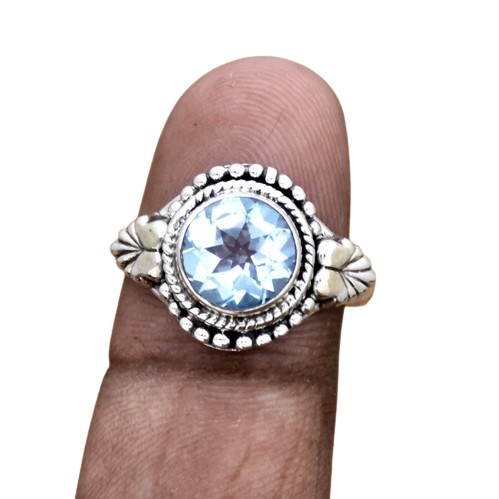 Anillo hecho a mano de Topacio azul natural, joyería de plata de ley 925 sólida, piedras preciosas perfectas para niñas, anillo de sello de plata de ley 925, joyería