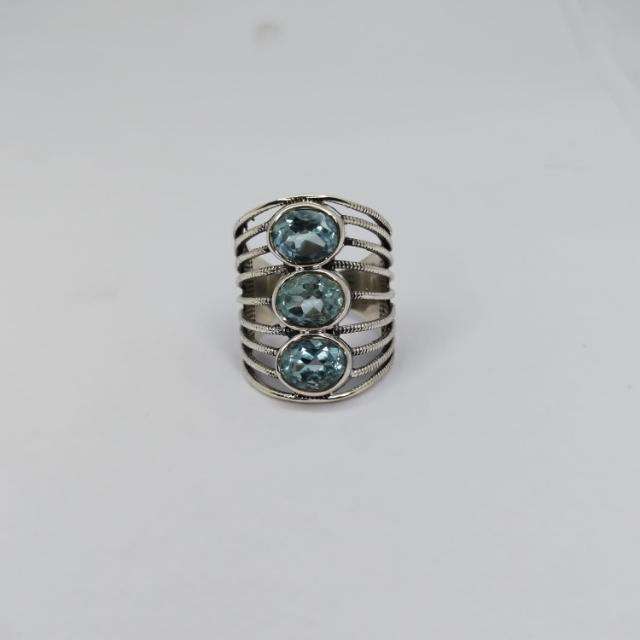 Anillo de Boda Clásico Apilable de Plata de Ley 925 con Topacio Azul Natural y Logotipo Personalizado para Fiesta de Mujeres