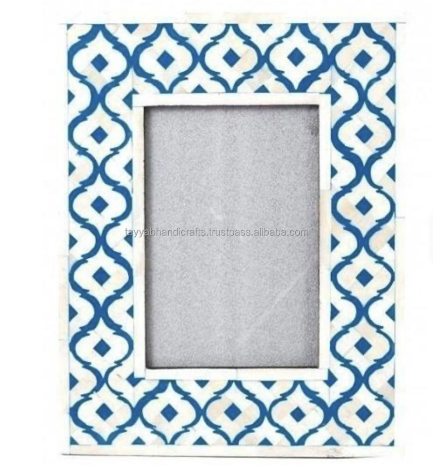 Marco de fotos de resina con incrustaciones de hueso natural, hecho a mano, diseño y tamaño personalizables, hecho por Tayyab Handicraft.