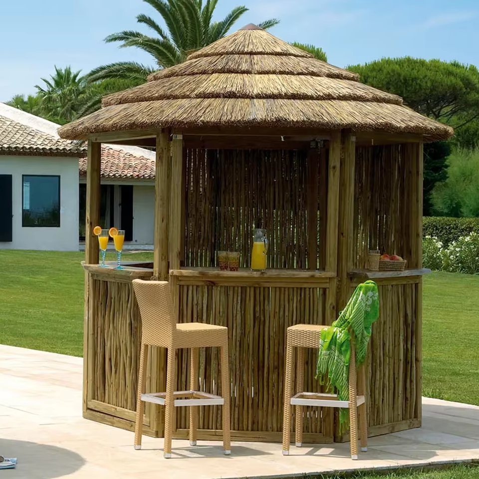 Sombrilla de Jardín Grande de Caña Natural de 3m de Radio, para Bodas al Aire Libre, Fiestas en la Piscina, Tiki Palapa para Hoteles, Playas, Muebles de Exterior