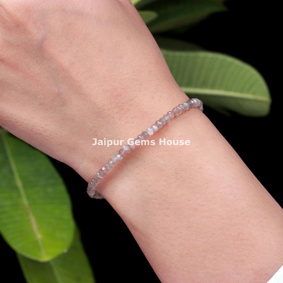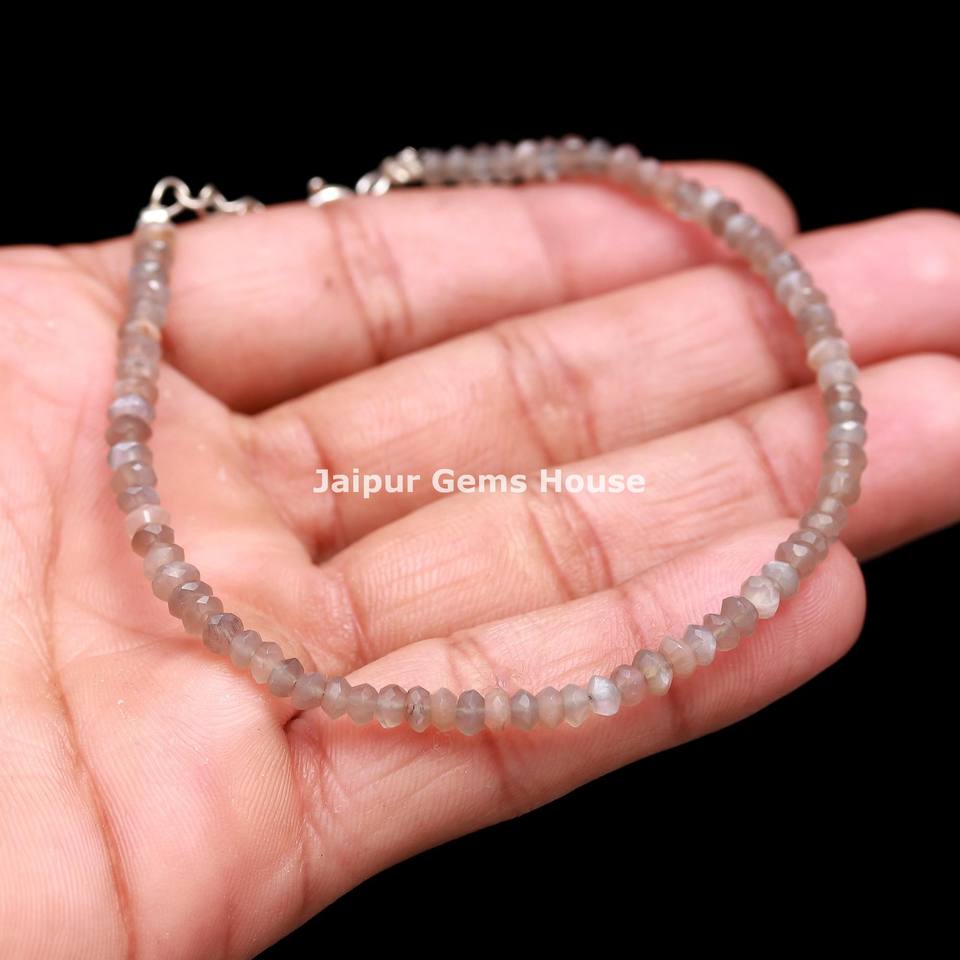 Piedra lunar de chocolate natural facetada Rondelle pulsera con cuentas piedra lunar pulsera de plata esterlina/tobillera joyería para aliviar la ansiedad