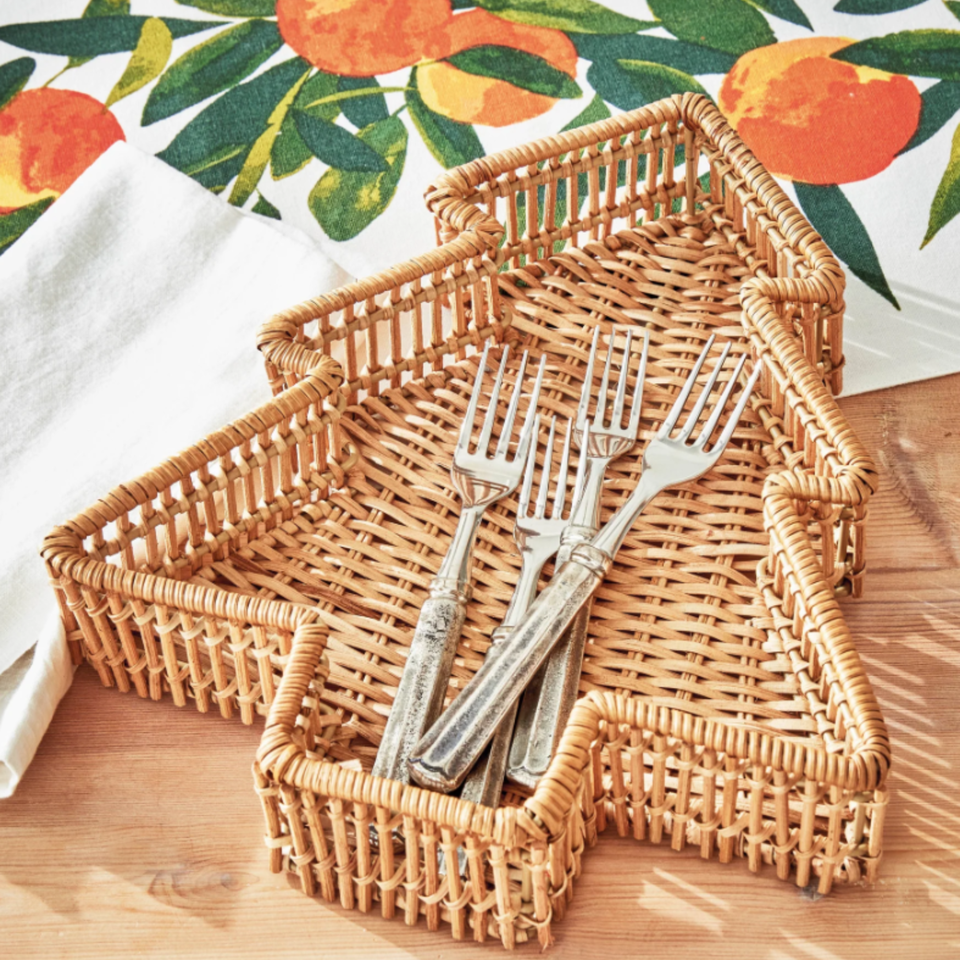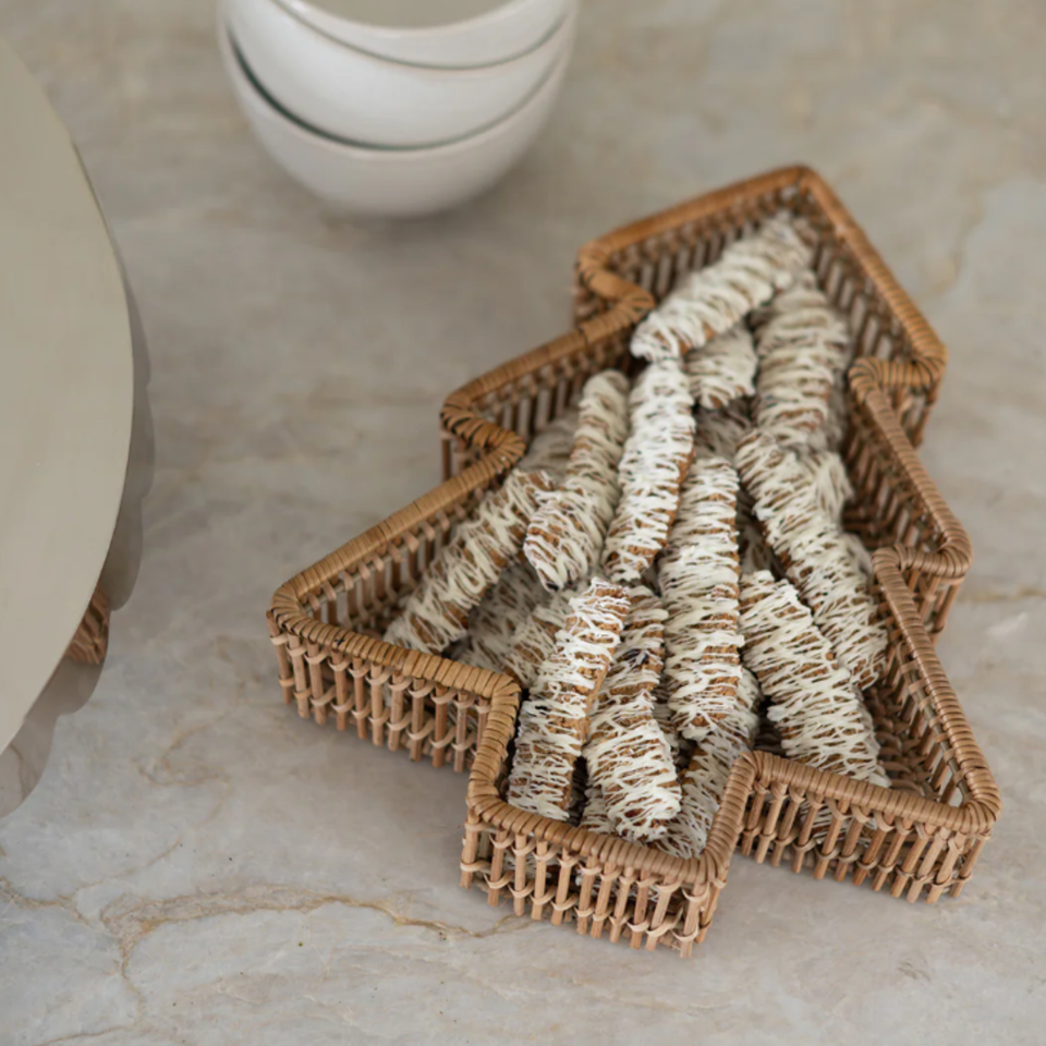 Bandeja Navideña de Ratán Natural, Bandeja Decorativa, Plato de Ratán.