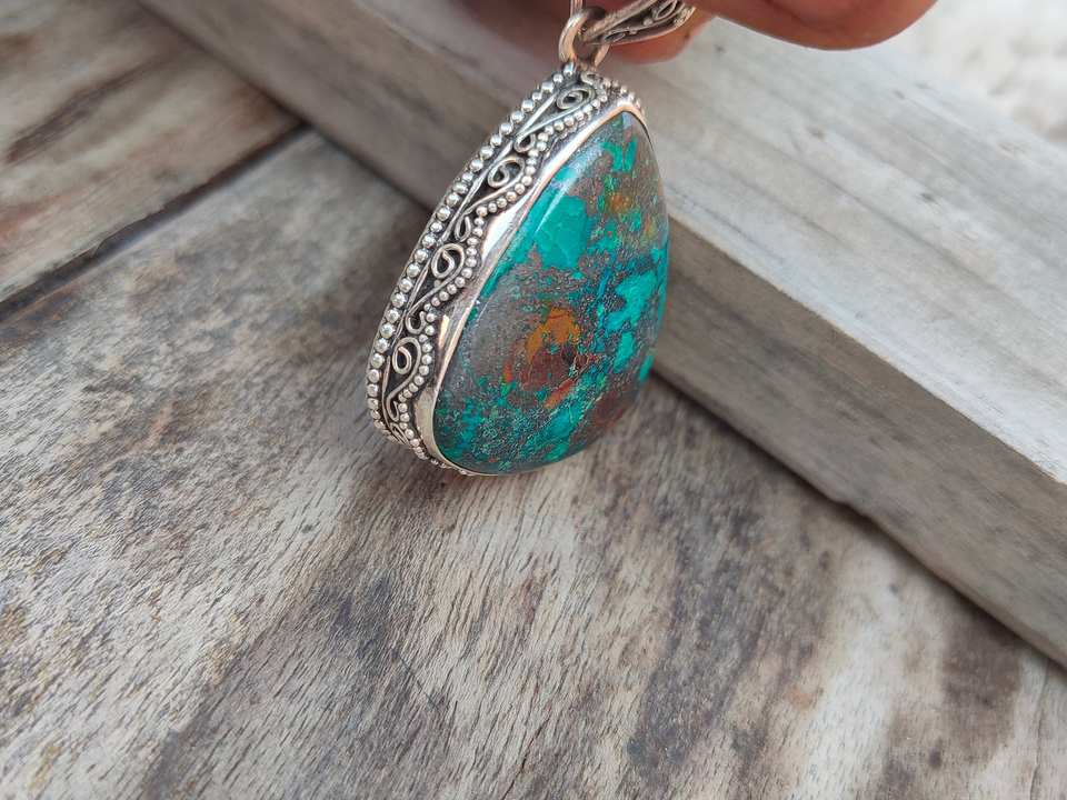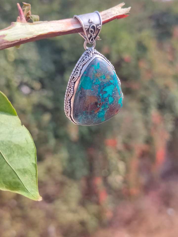 Nombre del producto:Colgante hecho a mano de plata natural de la piedra preciosa de Chrysocolla