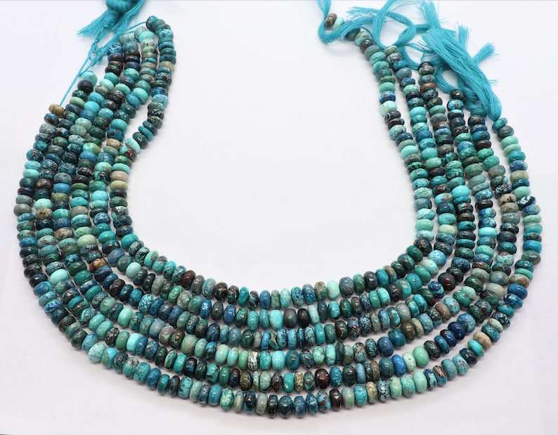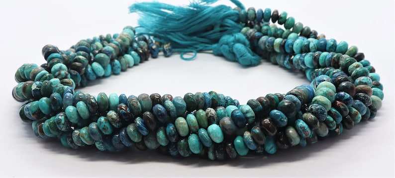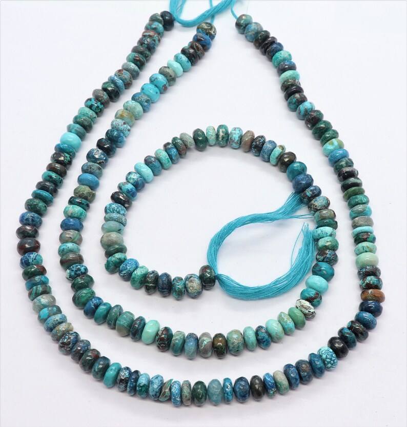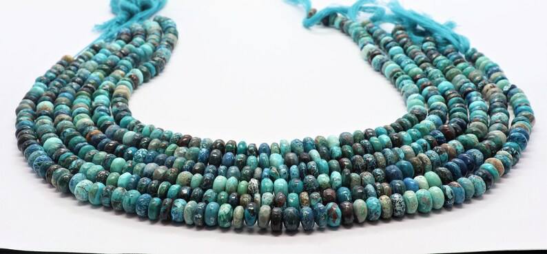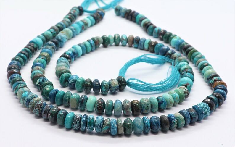 Cuentas de crisocola natural lisas en forma de rondel de 7-7.5 mm, cuentas de rondel de crisocola para la fabricación de joyería, cuentas de crisocola al por mayor.