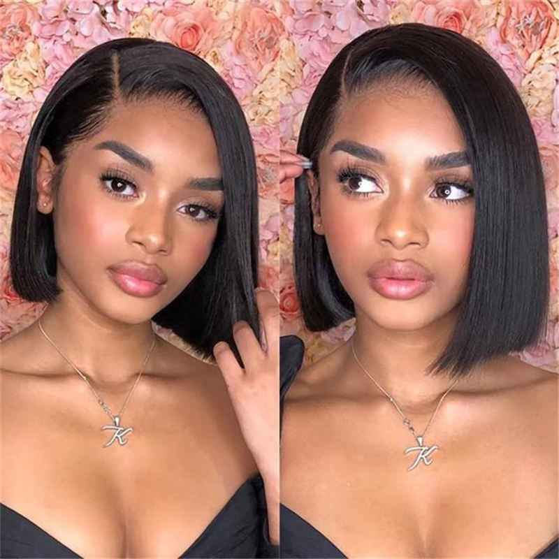 Color Natural 13x4 10 pulgadas cabello humano vietnamita peluca Frontal de encaje suizo recto suave corto Bob pelucas para mujeres negras