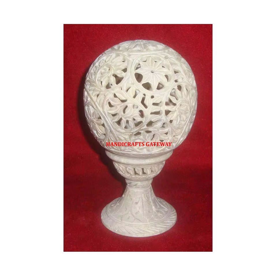 Diseño de tallado de hojas hermosas de Color Natural con forma redondeada de esteatita en soporte de vela para el artículo del hogar en el distribuidor